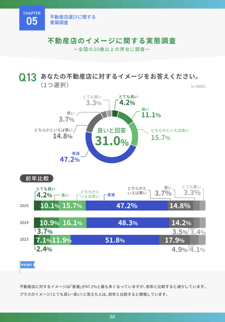 不動産のイメージは、2023年から少しずつ「良い」が増加している模様。嬉しいですね。