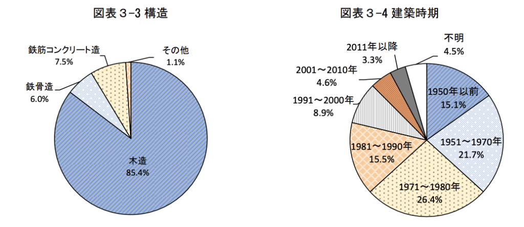 • 建築の時期:7割超が1980年以前建築