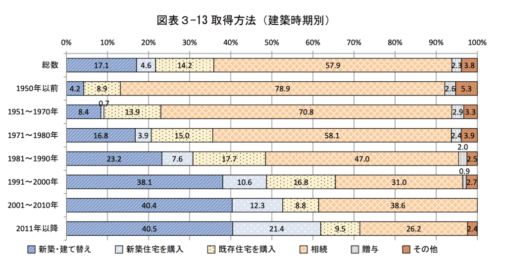一方「2011 年以降」では約 26%となっているなど、建築時期が古くなるほど「相続」が増加する傾向にあります。