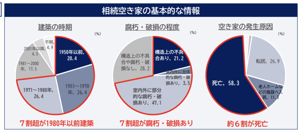 • 空き家の発生原因:約6割が死亡によって空き家に