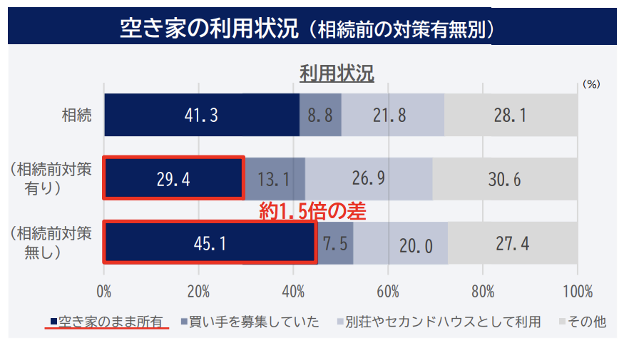 また、相続税前対策アリの場合は、無しの場合と比べて空き家のまま所有していることが少ない結果になっています。