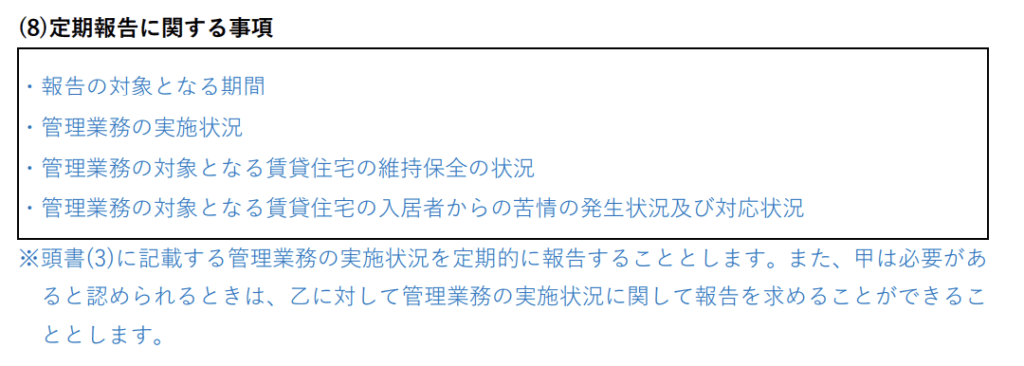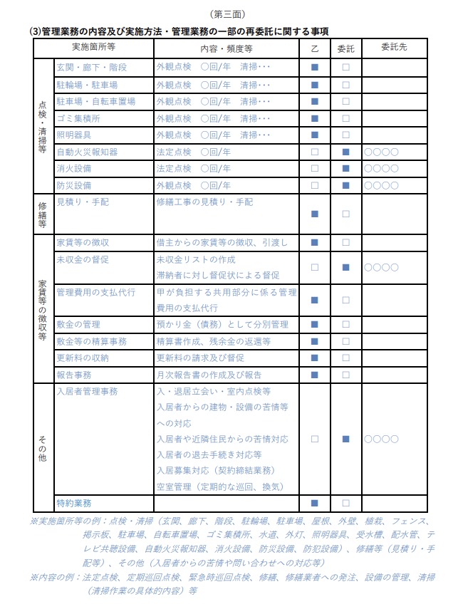 国土交通省の「賃貸住宅標準管理受託契約書」のPDFを参考に記載していきます。