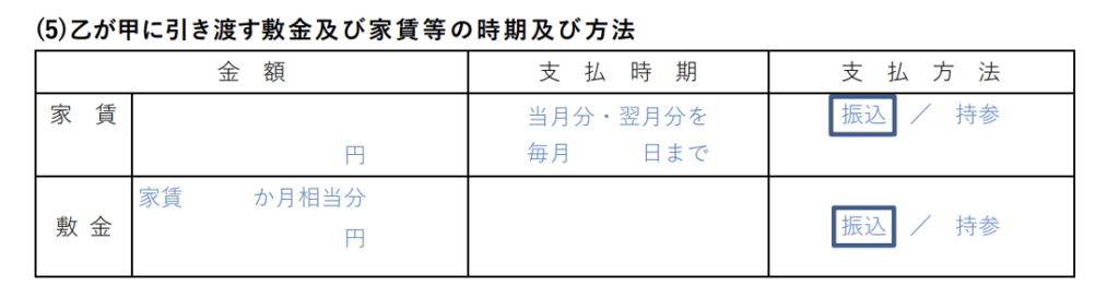 家賃及び敷金等の引き渡しです。